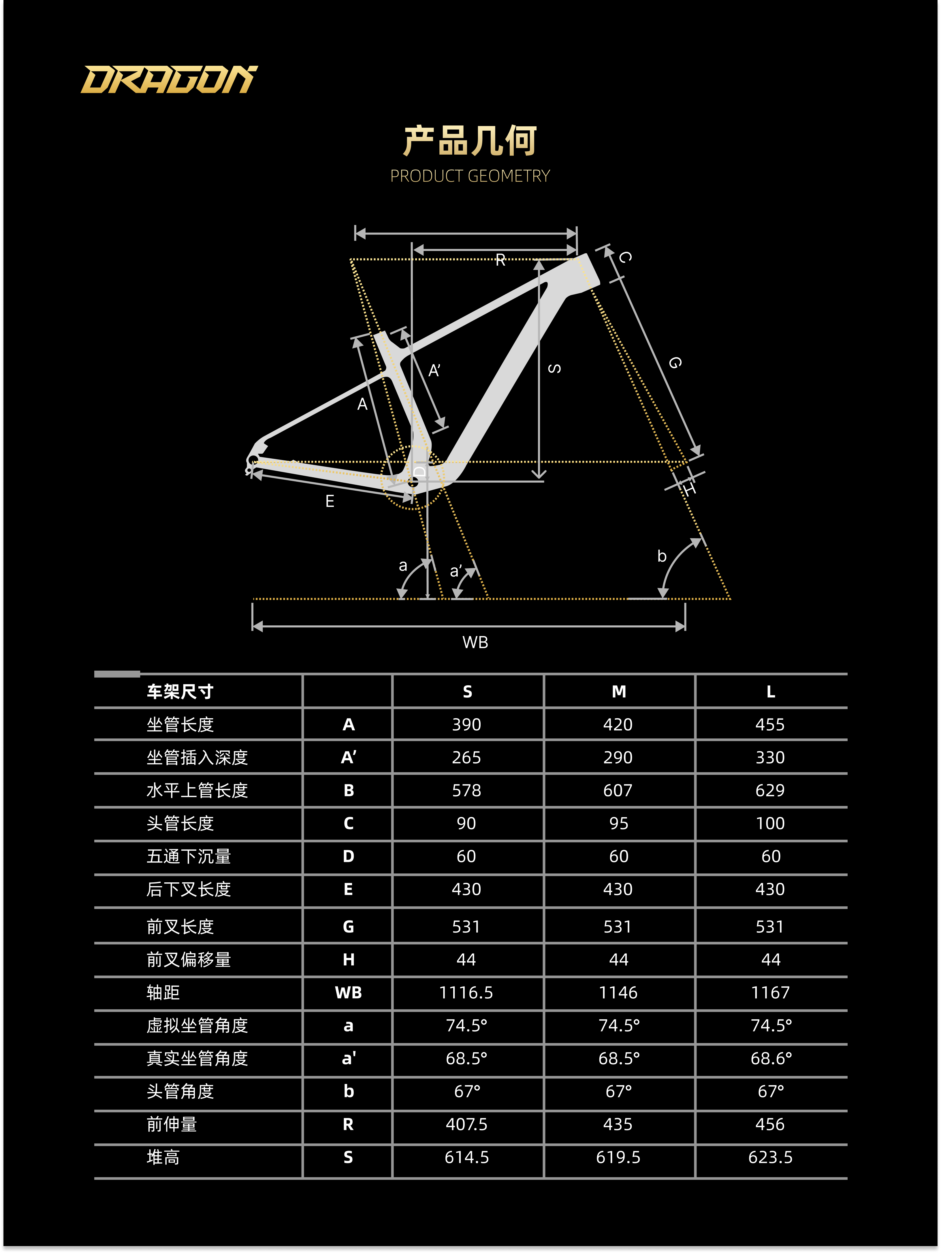 见田得头管角度为67度,座管等效角度74.5度,都为主流标准设定。座管实际角度为更倾斜的68.5度,搭配上升降坐管,可以在下坡路段让座椅更向前、向下收缩,腾出较大的座舱空间,在上坡路段提供更舒适高效的踩踏效率。